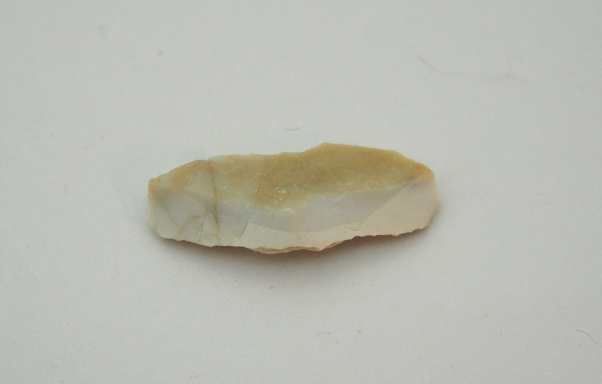 A debitázstengelyre szimmetrikus, szilánkon készült, intenzíven használt vakaró/kaparó eszköz maradványa ('tula slug').