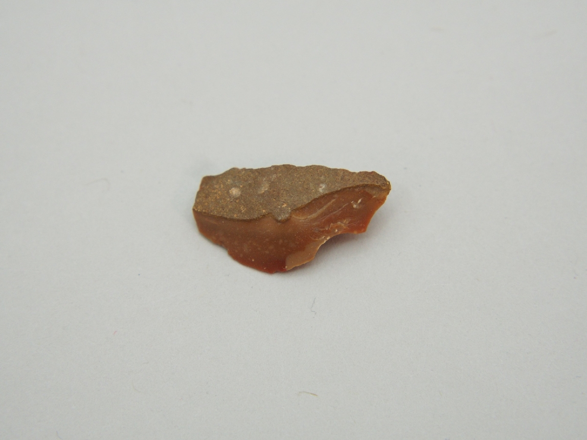 A debitázstengelyre szimmetrikus, szilánkon készült, intenzíven használt vakaró/kaparó eszköz maradványa ('tula slug'). Mind proximális, mind disztális vége erősen elhasznált. Talonján (bázisán) a nyersanyag külső patinás felszínének maradványa.