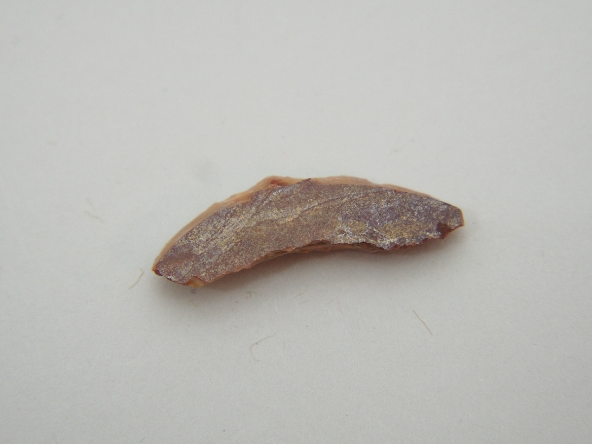 A debitázstengelyre szimmetrikus, szilánkon készült, intenzíven használt vakaró/kaparó eszköz maradványa ('tula slug'). Mind proximális, mind disztális vége erősen elhasznált. Talonján (bázisán) a nyersanyag külső patinás felszínének maradványa.