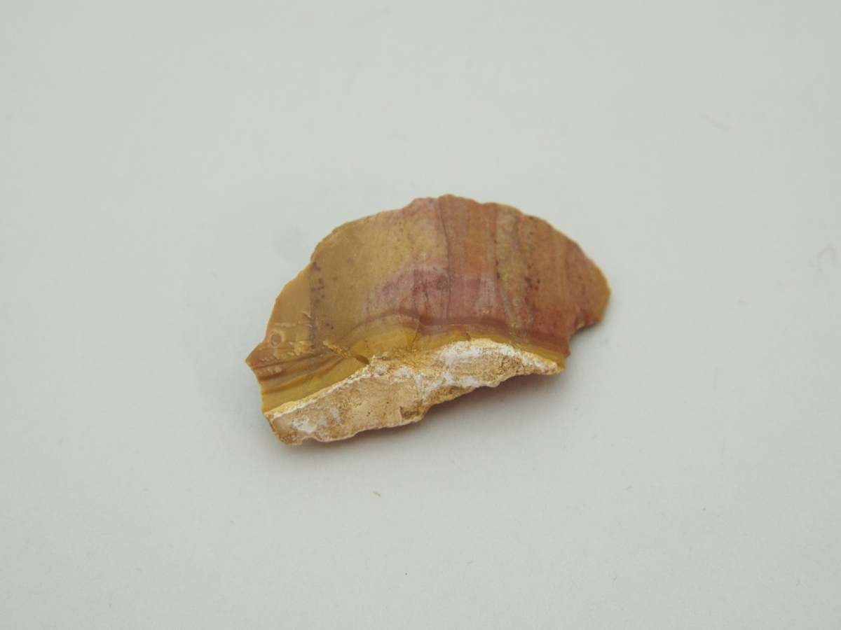 A debitázstengelyre aszimmetrikus, szilánkon készült, intenzíven használt vakaró/kaparó eszköz maradványa ('tula slug'). Talonján (bázisán) a nyersanyag külső erodált felszínének maradványa.
