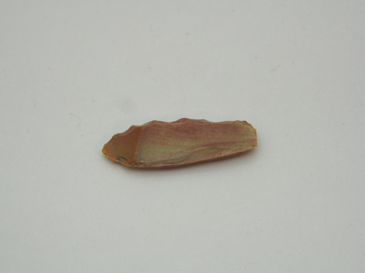 A debitázstengelyre aszimmetrikus, szilánkon készült, intenzíven használt atipikus vakaró/kaparó eszköz maradványa ('tula slug'). A munkaélt a szilánk proximális végén alakították ki.