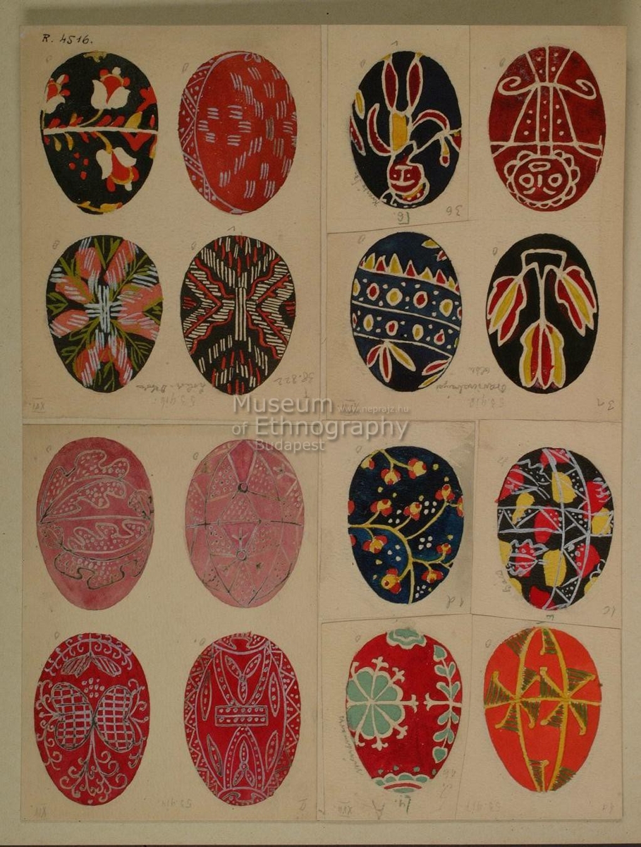 Hímestojások mintáit tartalmazó színes tábla.