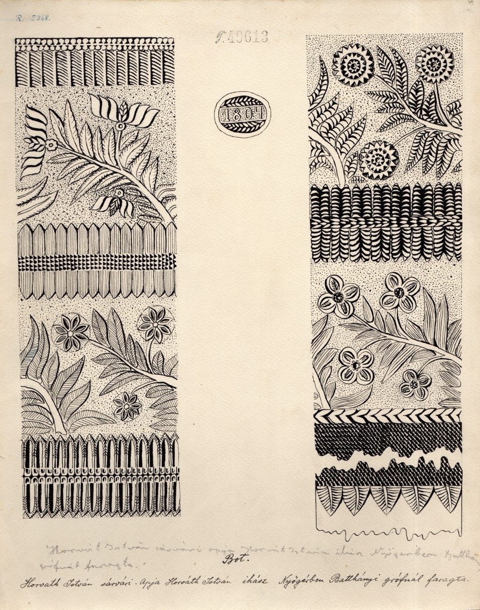 Pásztorbot faragásának mintája, 1804-es évszámmal. A faragás Horváth István munkája.