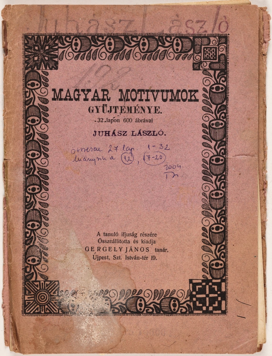 Magyar motívumok gyűjteményét tartalmazó füzet, az egyes néprajzi tájegységek jellemző mintáival.